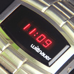 With its elegant tapered face and crystal, this excellent timepiece blends a bit of classical elegance with a bit of 70s futuristic design.